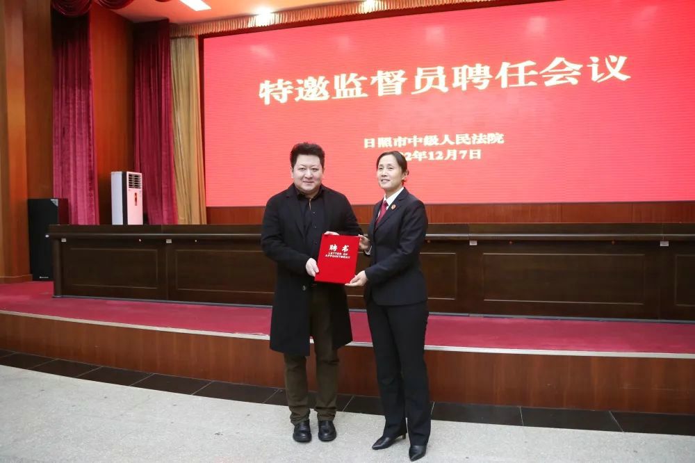 2022年12月7日,日照市中級人民法院召開特邀監督員聘任會議,潔晶集團總裁林成彬被聘任為特邀監督員并作為特邀監督員代表做了發言。